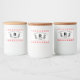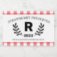 Labeln Sie Ihre hausgemachten Rezepte mit einer Touch Land! Ein rotes Gingham-Muster grenzt an ein Leerzeichen, um das Monogramm-Initial einzuschließen, umgeben von einem schwarzen Lorbeeren. Der Text oben und unten erlaubt die Personalisierung, einschließlich der Art des Essens, Ihres Namens und des Datums.