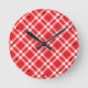 Red Gingham Pattern Runde Wanduhr