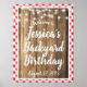 Red Gingham Rustic Wood Backyard GRILLEN Birthday Poster