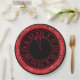 Dieser glamouröse, individuelle Party-Teller präsentiert ein festliches Neujahrsthema. Eine Uhr mit der Zeit um fast Mitternacht wird in einer roten Imitat-Folie auf schwarzem Hintergrund gedruckt. Der Rahmen weist ein rotes Diamantenmuster auf.