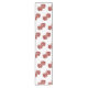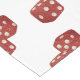 Dieser Tischläufer bietet ein raffiniertes und glamouröses Spiel- oder Casino-Thema. Ein Bild von Würfeln aus rotem Glitzer ist auf einem weißen Hintergrund gekachelt.