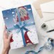 Niedliches Buffalo kariertes Gnome auf blauem und weißem Hintergrund mit Schnee