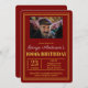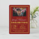 Eine stilvolle 100. Geburtstagsfeier. Eine moderne Einladung in Rot und Gold. Diese stilvolle Einladung ermöglicht ein personalisiertes, individuelles Foto des Geburtstagsjungen! Text in goldfarbenen Effekt-Schriftart und alle können geändert werden, um Ihren Party-Anforderungen anzupassen, dann personalisiert mit einem Namen und Datum. Die Hintergrundfarbe kann bei Bedarf geändert werden - klicken Sie einfach auf die Schaltfläche "Weitere Personalisierung" und der Hintergrund befindet sich auf der verlassen Seite.