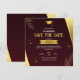 Erzählen Sie Ihren besonderen Tag mit dieser Save the Date, roten und goldfarbenen Abschluss-Karte. Diese Karte mit eleganter Typografie und einer feinen, raffinierten Farbpalette ist ideal, um Ihren akademischen Meilenstein im Stil zu feiern.