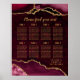 Red Gold Agate Wedding Seating Chart 8 Table Poster
