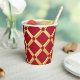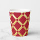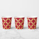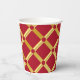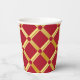 Elegante rote und goldene Papiertassen. Ideal für Party und festliche besondere Anlässe. Roter Hintergrund mit goldfarbenem arabisch-inspiriertem Muster im modernen Stil. Abstrakt, Illustration, elegant, geometrisch, modern, ethnisch, Barock, Luxus, Arabisch, maurisch, Motiv. Größe: 236 ml, kein Deckel.