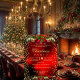 Rot und Gold Glocken Holly Weihnachtsfeier Einladung. Eleganter Goldkranz und Diamanten mit rotem Schimmer. Bitte beachten Sie: Alle flachen Bilder!