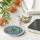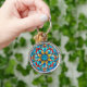Auf diesem Schlüsselanhänger ist ein atemberaubendes Mandala-Design in den Farben hellblau, gold und rot. Stellen Sie sicher, dass Sie die passenden Ohrringe und Halsketten in unserem Shop sehen.
