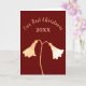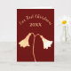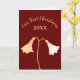 Diese romantische erste Weihnachtskarte zeichnet sich durch ein rotes und goldenes Design mit Kalligraphie-Schrift und einer personalisierten Botschaft im Inneren aus. Die Blume ist eine Blume, die immer mit zwei Blüten an einem Stamm wächst, unzertrennlich. Fügen Sie Ihre Informationen auf der Tafel rechts hinzu und besuchen Sie unseren Shop für passende Geschenke und Ornamente. Original Artwork vom Wilderness Store