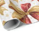 Red and gold look so good together anytime. At Christmastime they are especially beautiful. On bows and satin ribbons they are a striking combination, as seen on this gift wrap roll. Faux gold in the sparkling snowflakes and whimsical falling snow add a delicate, lovely touch. This vintage, watercolor pattern is of fanciful double bows that will delight the friends and relatives you gift this holiday season.