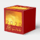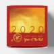 Modernes Design mit goldenem Texturbild mit großen 2020 in rot + kleine Rat Papier-Schnitt + Rat Ideogramm mit gelben Texten GLÜCKLICHES NEUES JAHR und Jahr der Ratte auf einem roten Hintergrund. Design auf klassische Würfel Gefälligkeitsbox mit rotem Hintergrund. Matching Grußkarte, Einladungen und mehr... Ideal für ein zeitloses und modernes chinesisches Neujahr der Ratte 2020.