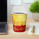 Modernes Design mit goldenem Texturpapier (gedrucktes Bild) mit senkrechten goldenen chinesischen Wünschen + große 2025 in rot + kleine Schlangenpapier geschnitten mit gelben Texten GLÜCKLICHES NEUES JAHR und Jahr der Schlange auf einem roten Hintergrund. Design auf Papiertasse. Sie können das Jahr ganz einfach ändern, indem Sie auf die Schaltfläche Anpassen klicken. Matching Grußkarte, Urlaub Postkarte und mehr bald... Ideal für ein zeitloses und modernes chinesisches Neujahr der Schlange 2025.