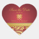 Red & Gold Damaskus, Chinesisches Doppelglücksherz Herz-Aufkleber