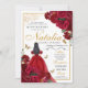 Rote und goldene Flora Quinceanera Einladung zum Geburtstag