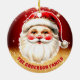 Feiern Sie die festliche Jahreszeit mit unserem roten Glitzer Retro Santa Claus Weihnachten Keramik Ornament! Dieses charmante Ornament besticht durch ein nostalgisches Set im Santa Claus-Design vor einem stilvollen Hintergrund aus rotem Gold, das Vintagen Charme mit modernem Flair verbindet. Ideal, um dem Weihnachtsbaum eine festliche Touch hinzuzufügen. Personalisieren Sie dieses individuelle Design mit Ihrem eigenen Familiennamen.