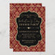 Red & Gold Heart Damask Valentine's Dinner Party Einladung