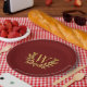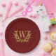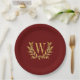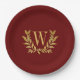 Red Gold Leaf Monogram Elegant Chic Wedding Pappteller