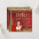 Paris Baby Dusche Einladung mit wunderschönem Eiffelturm, eleganten Geschenkpaketen in Rot und Gold in Paris, süßes Baby mit weißem Tutu und Perlenschnur, extravagantes Gold in Paris auf einem reichen rot-goldenen Spitzenhintergrund. Diese wunderschöne Pariser Babydusche lässt sich leicht an Ihre Veranstaltung anpassen, indem Sie einfach Ihre Details in den Schriftart-Stil und Farbe und den Wortlaut Ihrer Wahl einfügen. Dies ist ein gedrucktes Design ohne echte Spitze, Diamanten, Juwelen, Glitzer, etc.