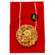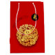 Komposition mit goldenem traditionellem chinesischen Papierschnitt eines Kaninchens in einen dekorierten Kreis + kleine moderne Schrift für das Jahr des Kaninchens 2023 und Chinesisches Kaninchen Ideogramm Symbol auf einen kleinen schwarzen Kreis. Design auf der mittelgroßen Geschenktasche mit rotem Hintergrund. Erhältlich in großen, kleinen und Wein Geschenktaschen. Passende Grußkarte, Urlaubspostkarte, Einladung, Handwerksbedarf, Party und mehr... Ideal für Chinesisches Neujahr des Kaninchens 2023 oder Geburtstag (Menschen geboren im Kaninchenjahr).