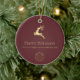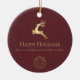 Red Gold Reindeer Happy Holidays Business-Logo Keramik Ornament