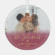 Eleganter Minimalistischer Rot und Gold Familienname und "Frohe Weihnachten" Foto Ornament. Mit dem handgeschriebenen Kalligraphieskript "Familienname", "Frohe Weihnachten", dem kleinen Herzmotiv und dem Jahr in Rot und Gold (Foto-Overlay mit rotem Farbverlauf) steht Ihr Lieblingstext zur Verfügung. Einfach zu personalisieren. Foto Tipp: Zuschneiden Sie Ihr Foto auf quadratisches Formular, bevor Sie es hochladen.