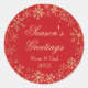 Klassisches Winterdesign in Rot und Gold mit Schneeflocken. Ein traditionelles, fröhliches, festliches Rot. Bearbeiten Sie die Vorlage einfach nach Ihren gewünschten Namen und Jahr. Red Gold Season's Greetings Classic Round Sticker. Weihnachtsrot #C30F16