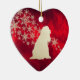 Dieses einzigartige Holiday-Ornament wird für jeden, der ein fröhliches amerikanisches Cocker Spaniel Liebe hat, ein wundervolles Geschenk machen! Es zeigt eine goldene Silhouette Cocker Spaniel Bild vor einem Spray von verzierten Goldschneeflocken. Das Bild wird auf einem Gradienten tiefen Weihnachtsrot Hintergrund platziert. Die Rückseite des Ornaments hat den gleichen roten Hintergrund und Gold Schneeflocken, und ein Textfeld für Sie anpassen.