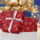 Dieses Verpackungspapier mit goldenen Schneeflocken und leuchtend rotem Hintergrund ist ideal, um Ihre Winterurlaubsgeschenke besonders aussehen zu lassen. Die Hintergrundfarbe kann geändert werden.