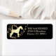 Dieses hübsche Rücksendeetikett zeichnet sich durch eine goldene Silhouette Airedale Terrier vor einem Schwirl aus goldenen Sternen aus. Das Bild wird auf einem dramatischen schwarzen Hintergrund platziert. Ihr eigener Text befindet sich rechts neben dem Bild in blassem Gold.