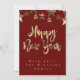 Red Gold Stars Musterskript glücklich Neues Jahr C Einladung