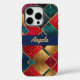 Rot, Gold, Mitternachtsblau und aquamarin vereinen sich zu einem reichhaltigen iPhone-Gehäuse. Schön und stilvoll. Personalisieren Sie mit Ihrem Namen in einer Mitternachtsblauen Band in der Mitte.