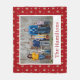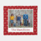 Rote und goldene Weihnachtsbaumstruktur Familienbankett personalisiert mit einem Foto und einem Namen.