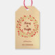 Schöne Weihnachtsgeschenke mit roten Winterbeeren und goldenen Blätter Kranz auf einem pfirsichfarbenen Hintergrund. Die Rückseite des Tags weist ein zartes rot-goldgepunktetes Muster auf Pfirsich auf. Personalisieren Sie den Text nach Bedarf.