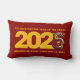 Feiern Sie das Jahr der Schlange 2025 mit diesem Lumbalkissen, das das Jahr 2025 in einem kühnen, hellgelben Schriftart gestylt hat, und AI-generierten Kunstwerken eines stilisierten asiatischen Schlange, in dem die Nummer 5 auf einem roten Hintergrund künstlerisch stehend ist. Passen Sie das Messaging auf Wunsch an. Umkehrung zeigt identisches Design. Design © W.H. Sim. Weitere Informationen unter zazzle.com/word2art
