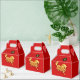 Composition with golden traditional Chinese paper cut-out of a horse + small modern lettering for Year of the Horse 2026 and Chinese Horse Ideogram Symbol onto a small black circle. Design on gable party favor box. Matching greeting card, holiday postcard, invitation and more. Perfect for Chinese New Year of the Horse 2026 or birthday (people born in Horse Year).