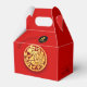 Komposition mit goldenem traditionellem chinesischen Papierschnitt eines Tiger+ kleinen modernen Schriftsatzes für" Jahr des Tiger 2022" und dem chinesischen Tiger Ideogramm Symbol auf einen kleinen schwarzen Kreis. Design auf Gable Gevor Box + Business Name und Adresse, um mit rotem Hintergrund anpassen. Erhältlich in Würfel, Zelt und Gate-out-Gutschachteln. Matching Grußkarte, Ferien Postkarte, Einladung, Party Vorräte und mehr. Perfekt für das chinesische Neujahr des Tiger 2022 oder Geburtstag (Menschen geboren im Tiger Jahr).