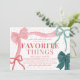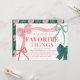 Feiern Sie die Saison stilvoll mit diesen charmanten, coquette-inspiriert Lieblingssendungen Weihnachtsfeierlichkeiten mit handgezeichnet Bögen, sanften Farben und einem romantischen, bandförmigen Design. An der Vorderseite befinden sich vier handgezeichnet Bögen: ein fett rosa Band mit roten Streifen, ein grünes Band mit Marinestreifen und zwei kleinere Akzente in klassischem Rot und Grün. Die Rückseite bietet einen fröhlichen grünen Hintergrund mit einem zarten Bogen-Muster.