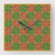 Red Green Fleur-de-Lis Holiday Pattern Quadratische Wanduhr