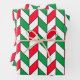 Dieses Verpackungspapier zeichnet sich durch ein modernes, Zickzack Design aus, ein geometrisches Herringbone-Muster in Weihnachtsfarben: rot, grün und weiß mit schwarzen Linien. Ideal für Weihnachten und jede andere Gelegenheit.