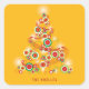 Red & Green Mod Circles Sparkling Weihnachtsbaum Quadratischer Aufkleber