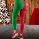 Red & Green Solid Color Block Weihnachten Leggings