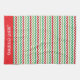 Helle, rote und grüne Zickzack auf weißem Hintergrund machen dieses Küchentuch zu einem idealen Zuhause für Ihren Urlaub! Personalisieren Sie Ihren Urlaub mit einem Gruß oder einem Namen in einer breiten, roten Band am unteren Ende. Design und Farben sind nicht so offensichtlich weihnachtlich orientiert und könnten ganzjährig verwendet werden.