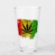 © Sunny Mars Designs. Rot, grün, gelb und rot, mit schwarzen Rasta-Blättertumoren - Cooles, anpassbares jamaikanisches Glas mit einer Silhouette Rastafarianblatt vor Reggae-Hintergrund.