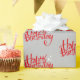 Rot glücklicher Geburtstag lustiger Schriftart mit weißen Sternen auf grauem Hintergrund. Die Hintergrundfarbe kann geändert werden.