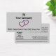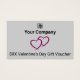 Die Promotional Red Hearts Gray Valentine's Day Gift Voucher Card ist Teil der Kollektion Graue Visitenkarten Designs & Marketing Items. Diese Landschaftskarte enthält schwarzen Text auf grauem Hintergrund mit zwei orangefarbenen Herzen. Das Firmenlogo und der Name sind in der obersten Mitte ausgerichtet, unten steht der "$XX Valentine's Day Gift Voucher" Text. Auf der Rückseite der links Seite befindet sich ein "Scan and Arrange!" CTA, QR-Code für eine einfache Terminplanung, Tracking ID: Liebe25, Einladung zum "Follow" des Social Media Handles und Valentinens Hashtag. Rechts die Kontaktdaten. Eine untere Trennlinie hebt die Begriffe hervor: "Diese Karte für $10 bei Ihrem nächsten Besuch | Kein Barwert | abgelaufen XX.XX.20XX." Weitere Informationen zum Branding finden Sie unter www.KBMD3signs.com. Für Hilfe kontaktieren Sie uns unter info@KBMD3signs.com.