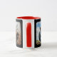 Red Hearts Happy Valentine's Day Boyfriend 2 Foto Tasse. Persönlicher Schlamm mit modernem und trendigem typografischem Sprichwort Happy Valentine's Day, Rotherzen und 2 maßgeschneiderten Fotos. Fügen Sie Ihre Fotos und Namen und machen Sie ein schönes Geschenk für Ihren Freund.