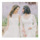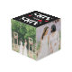 Romantischer Foto Würfel mit Platz für vier Ihrer Hochzeitsfeiern, mit MRS und MRS in weißen Schriftart geschrieben und mit roten Herzen auf schwarzem Hintergrund verziert.