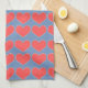 Rote handwerkliche Herzen mit Stichmuster auf blauem Hintergrund.