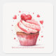 Red Hearts Sweet Cupcake Valentine Day Card Quadratischer Aufkleber