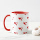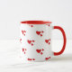 Das Bild zeichnet sich durch ein reizvolles Muster kleiner, rosa Herzformen aus, die auf einem sauberen, weißen Hintergrund angeordnet sind.